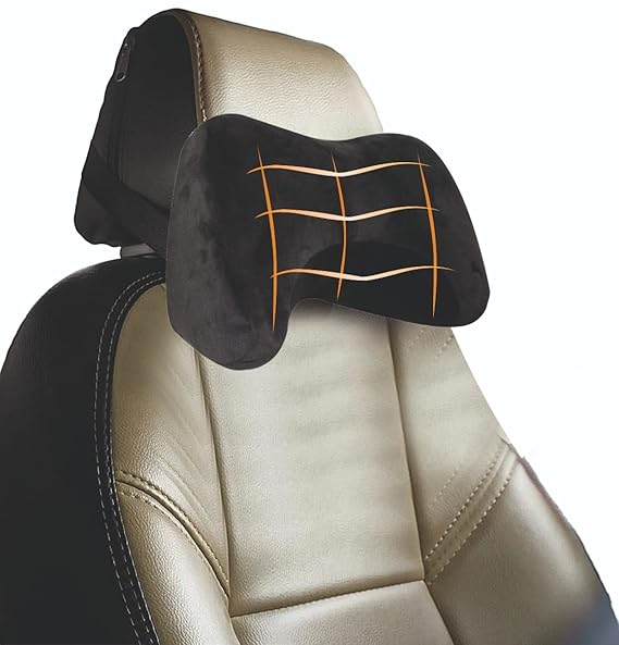 PROTEGO Universal Memory Foam Car Neck Rest Pillow with Washable Velvet Cover | Relieves Neck Pain | Ergonomic Support Orthopedic Cushion Ultra Soft | for All Hatchback SUV Sedan Cars | Black